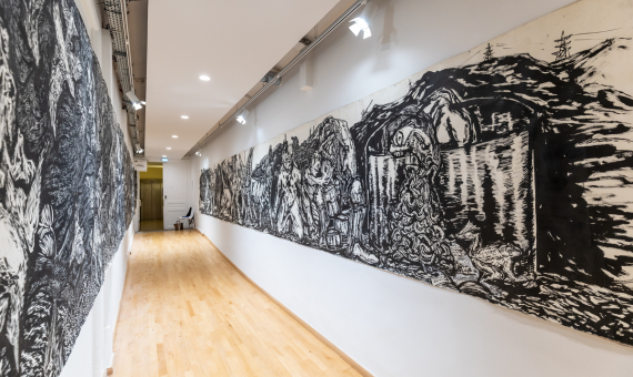 The temporal and spatial distortions offered by Anupam’s response to landscape painting become assertions to the impossibility of representing ongoing everyday violence subjected upon land and life that stands apart from majoritarian, privileged records and political sensibilities which plague the Indian context. From an artistic practice that locates itself at the confluence of culture and resistance, is informed by grassroot mobilizations, and often presents as political propaganda in protest sites, this body of work emerge as more poetic contemplations of invisibilized experiences that foreground local and rural land-labour relations, and the circulations between canonical representations in Indian art history, power, and territorial control.