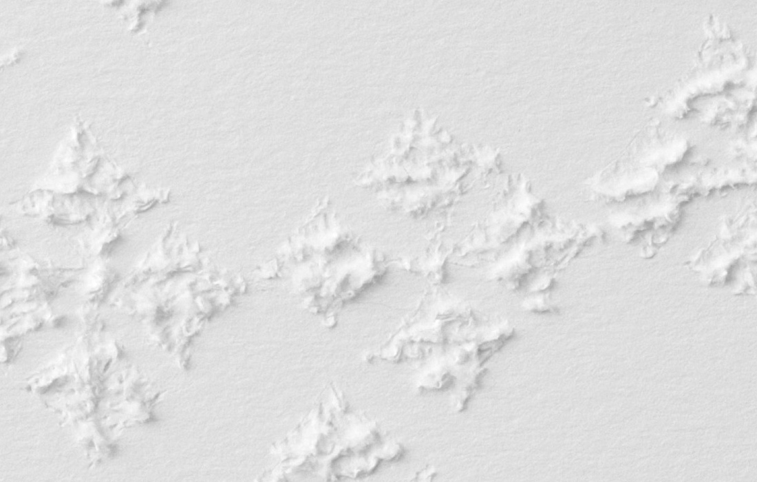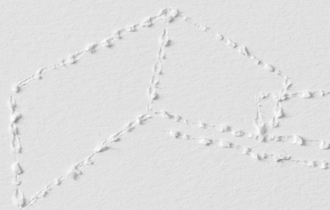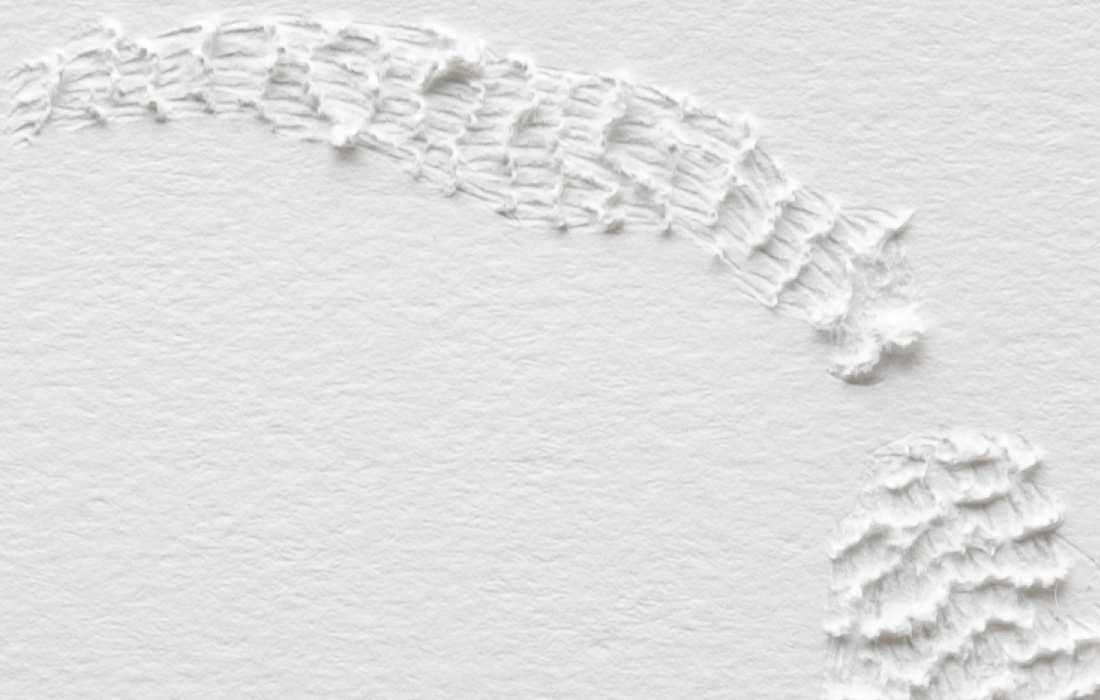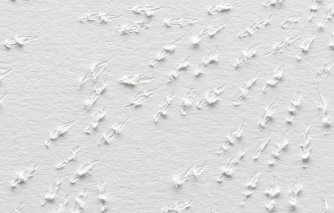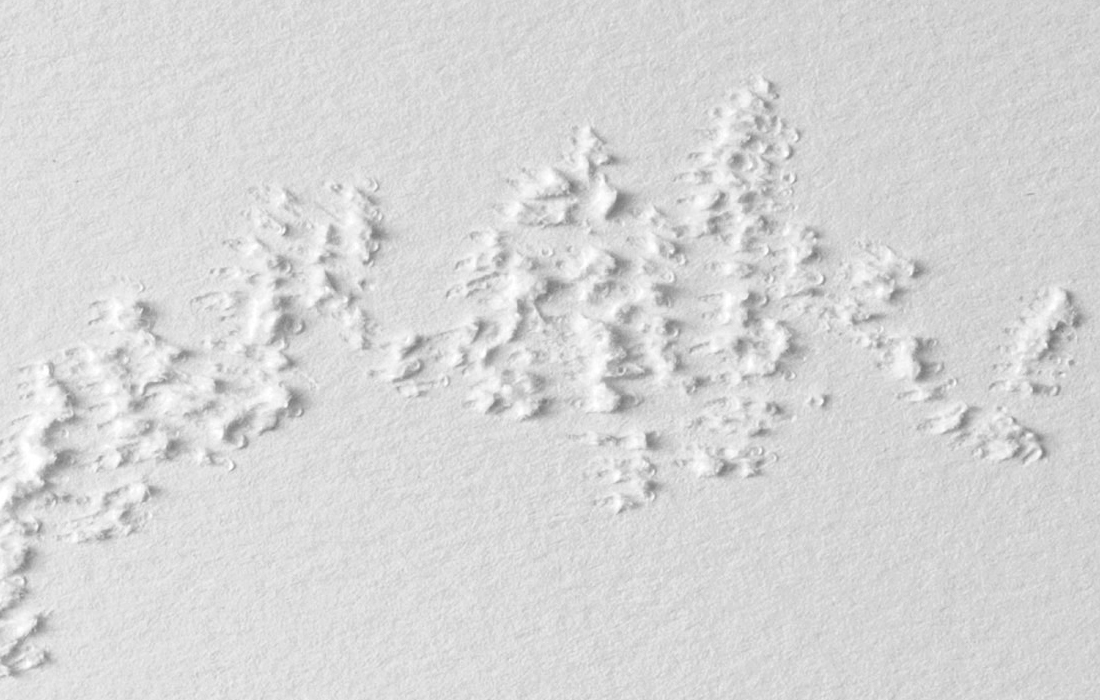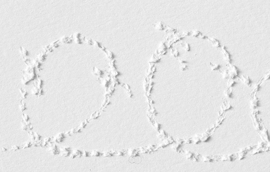 Mute Tongue, which also starts with poetry on asylum seekers: Murad, a young Somalian boy, and Anthony, a Sri Lankan national who left his home country during the Civil War, from whom Chakraborty collected stories. The sculptural work represents an audiograph of her reading the text out loud.
