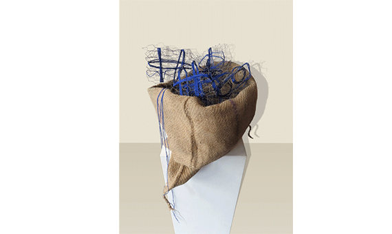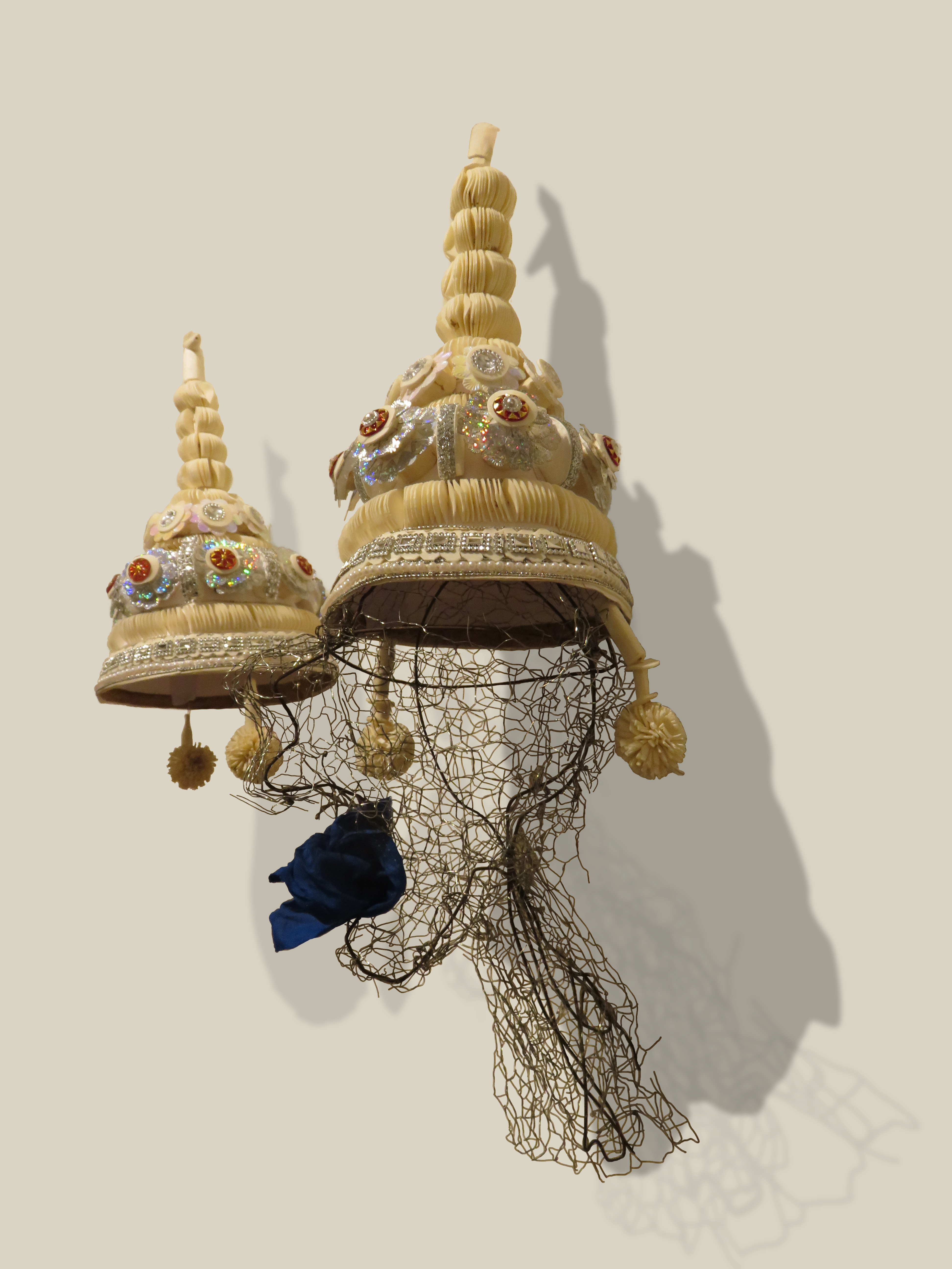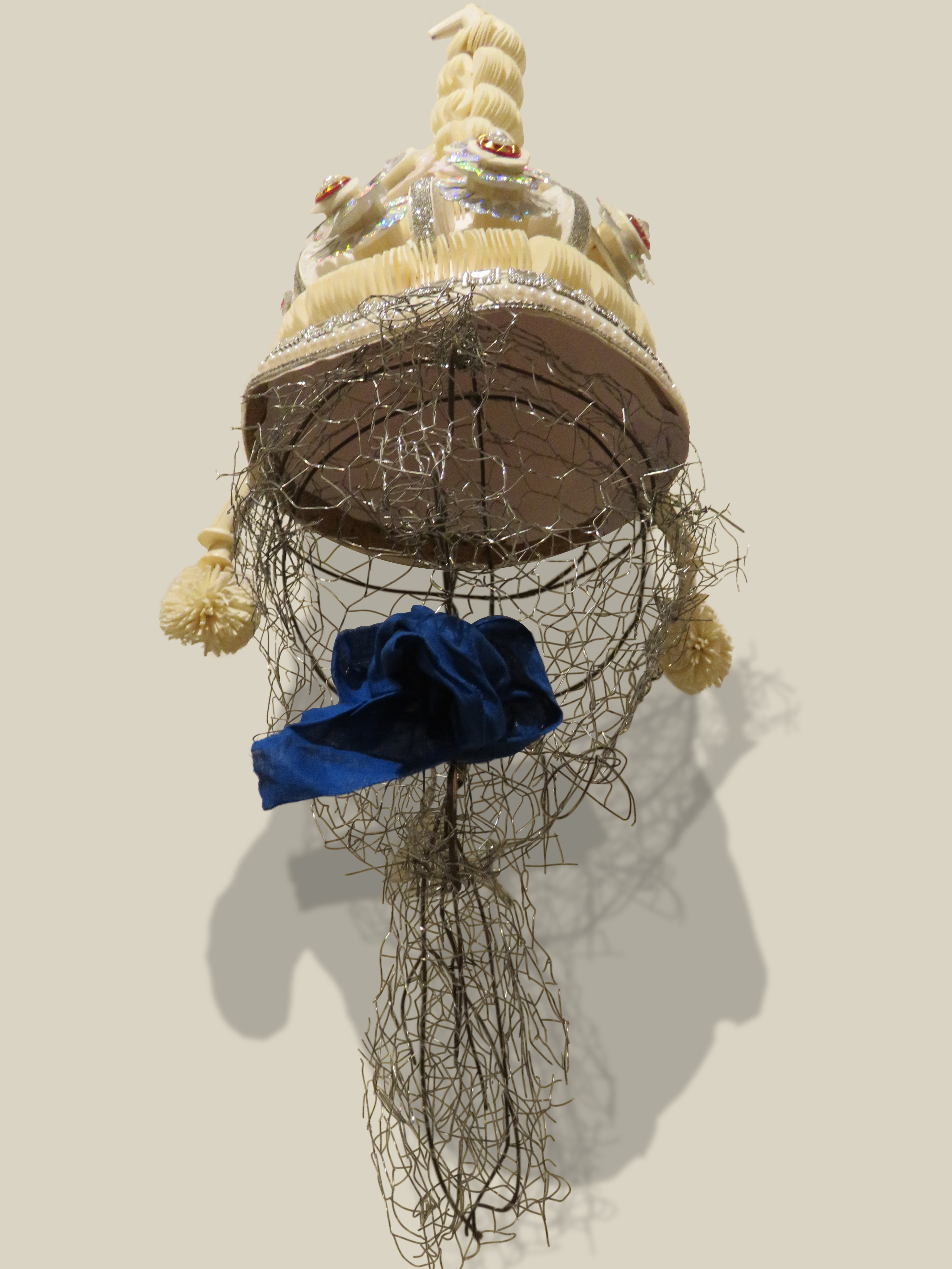 Wire mesh, cotton, natural indigo dye, shola pith (Indian cork)