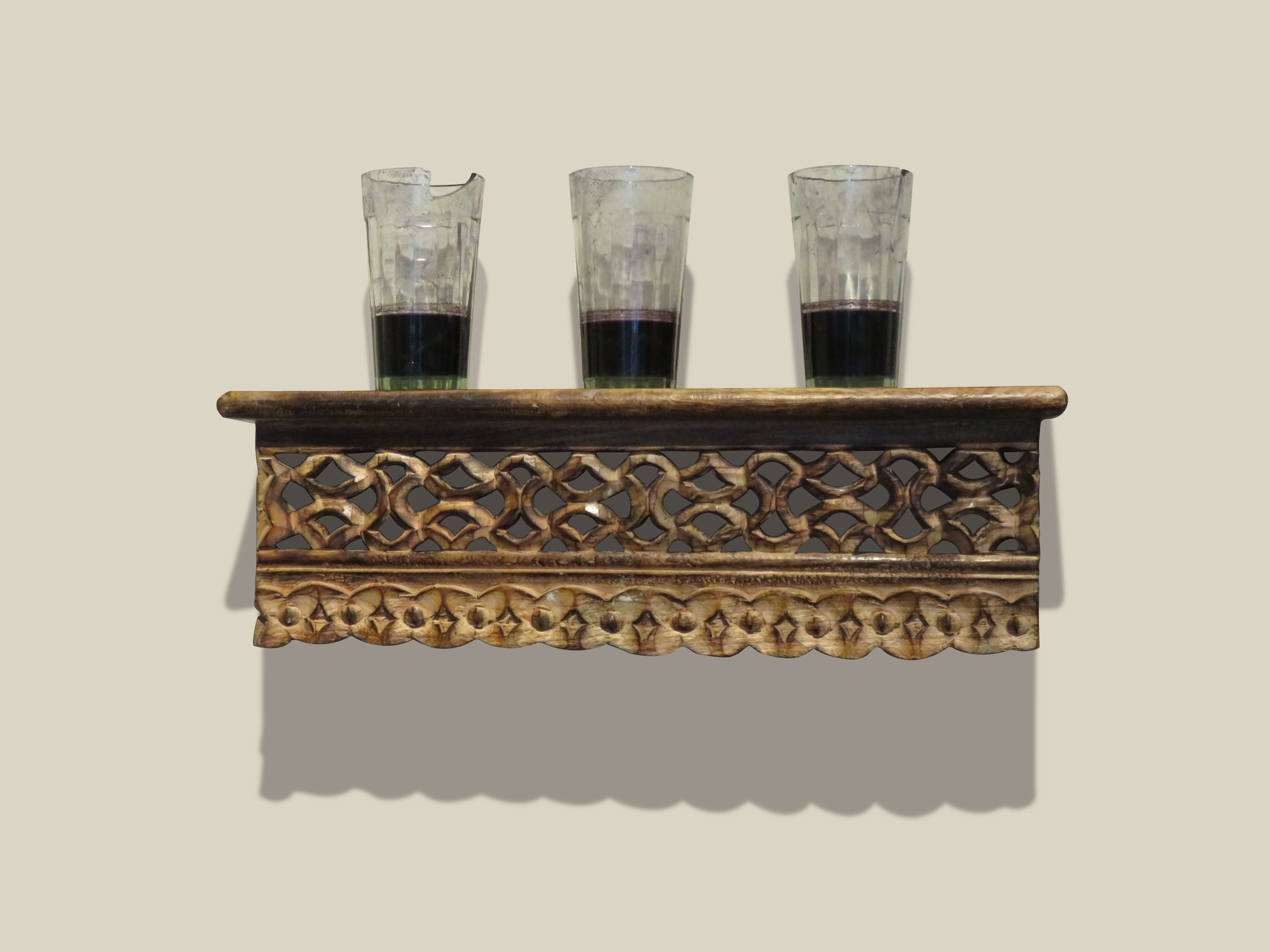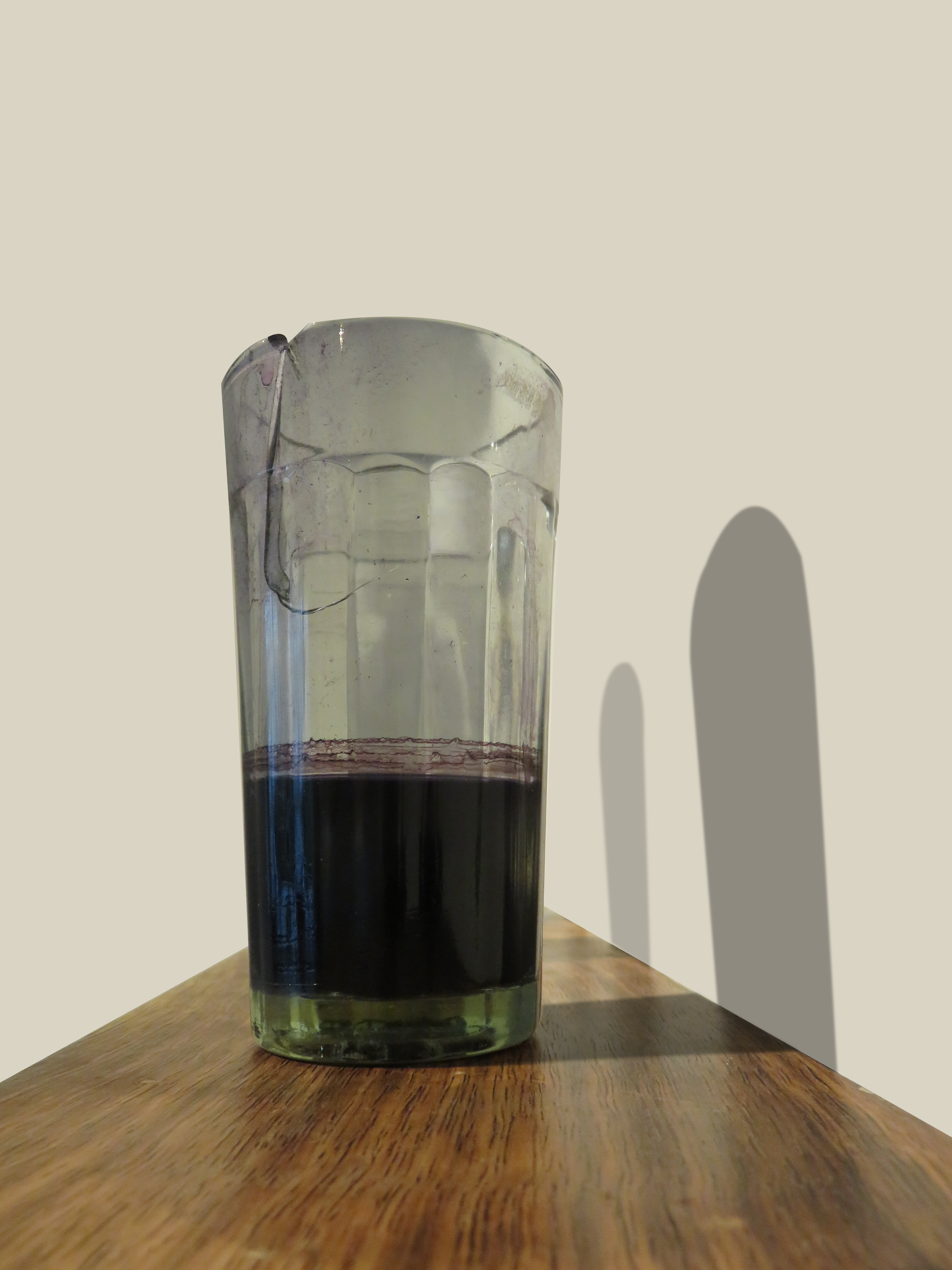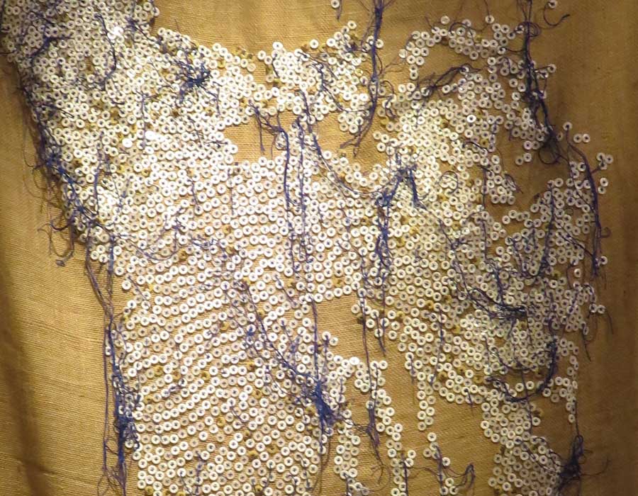 Glass, natural indigo dye, threads