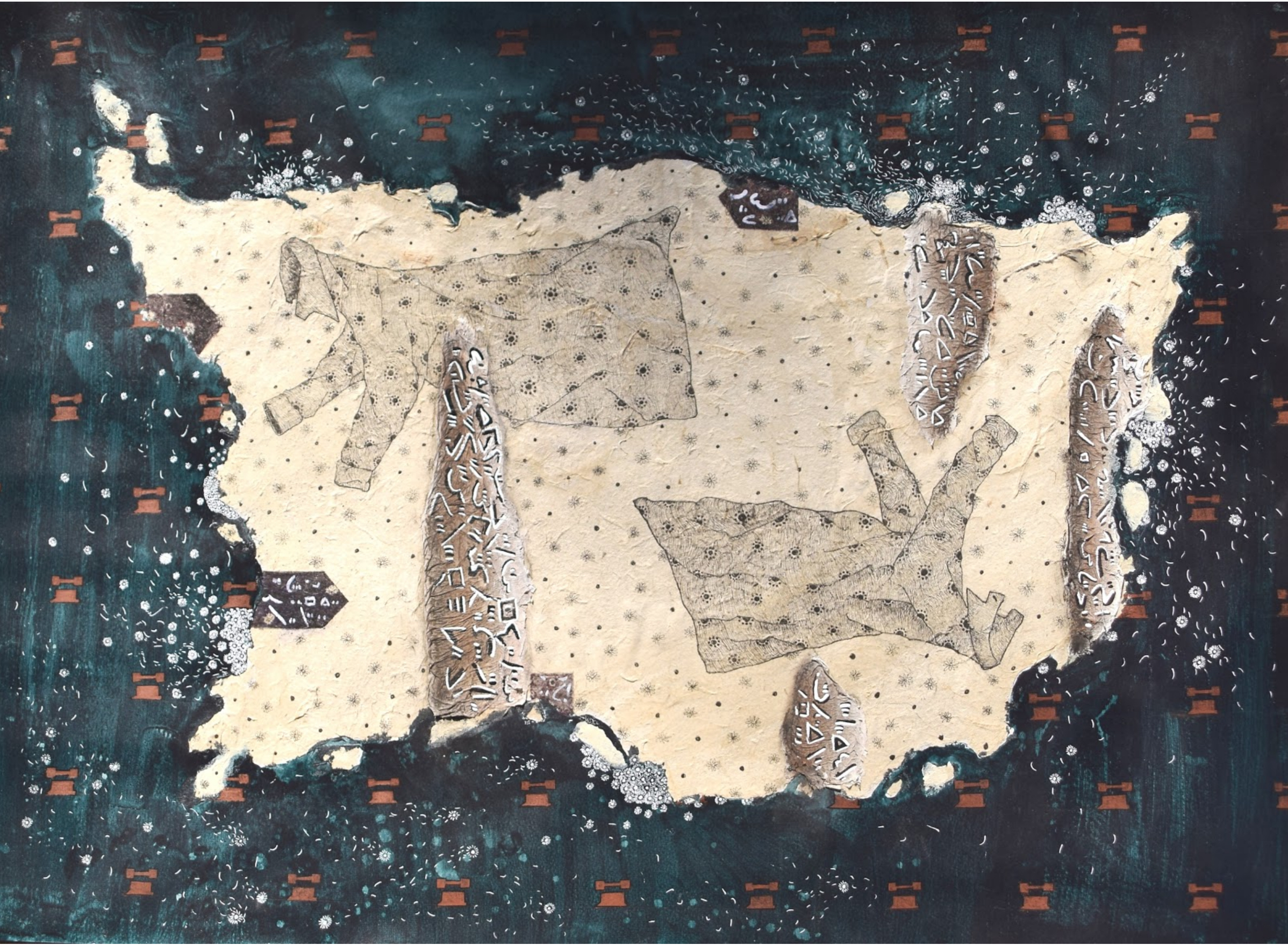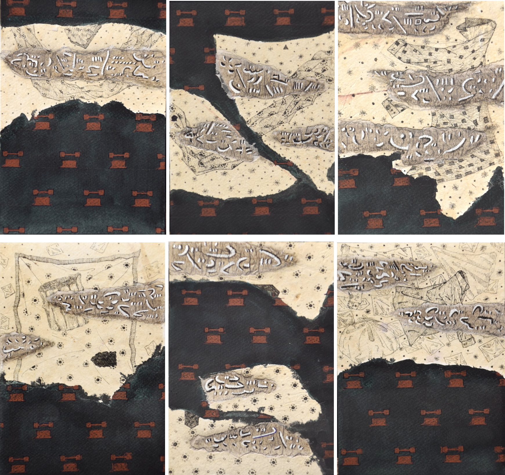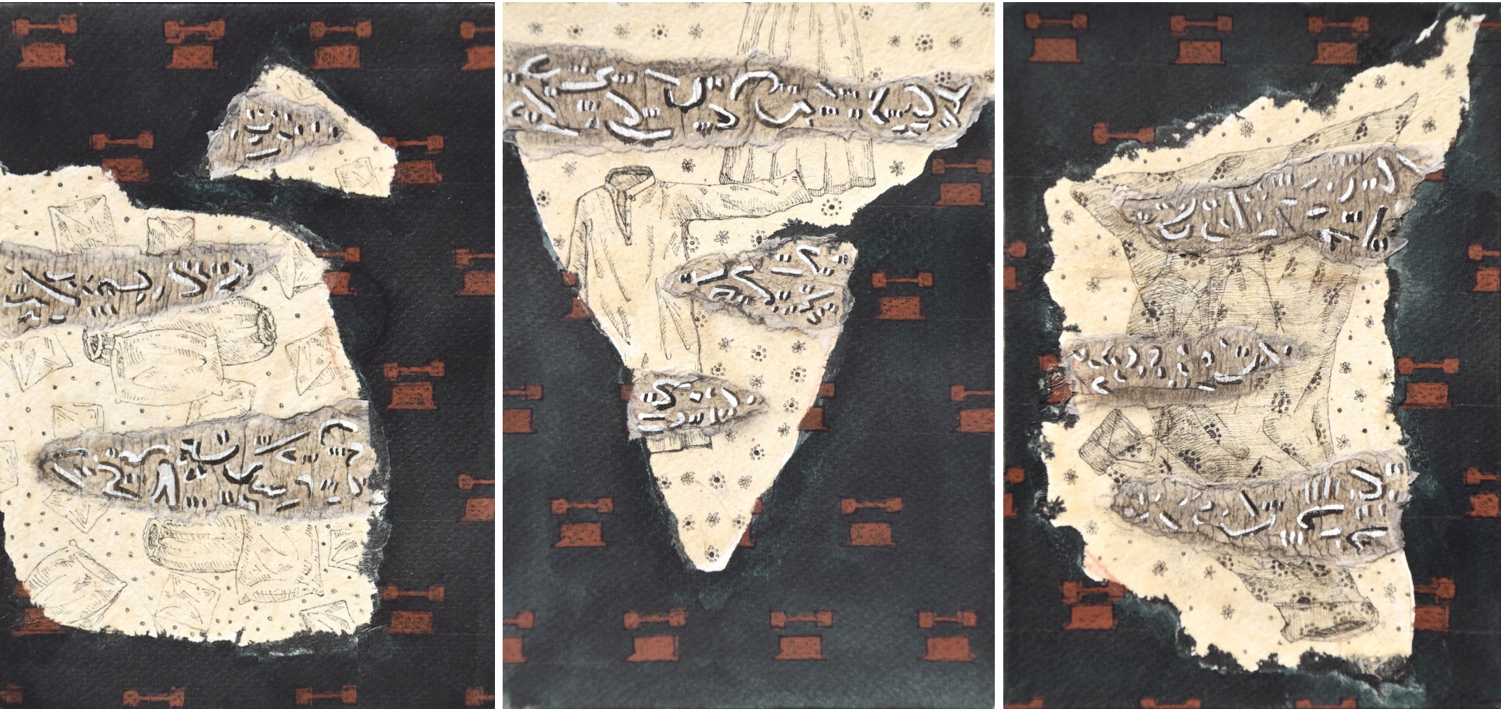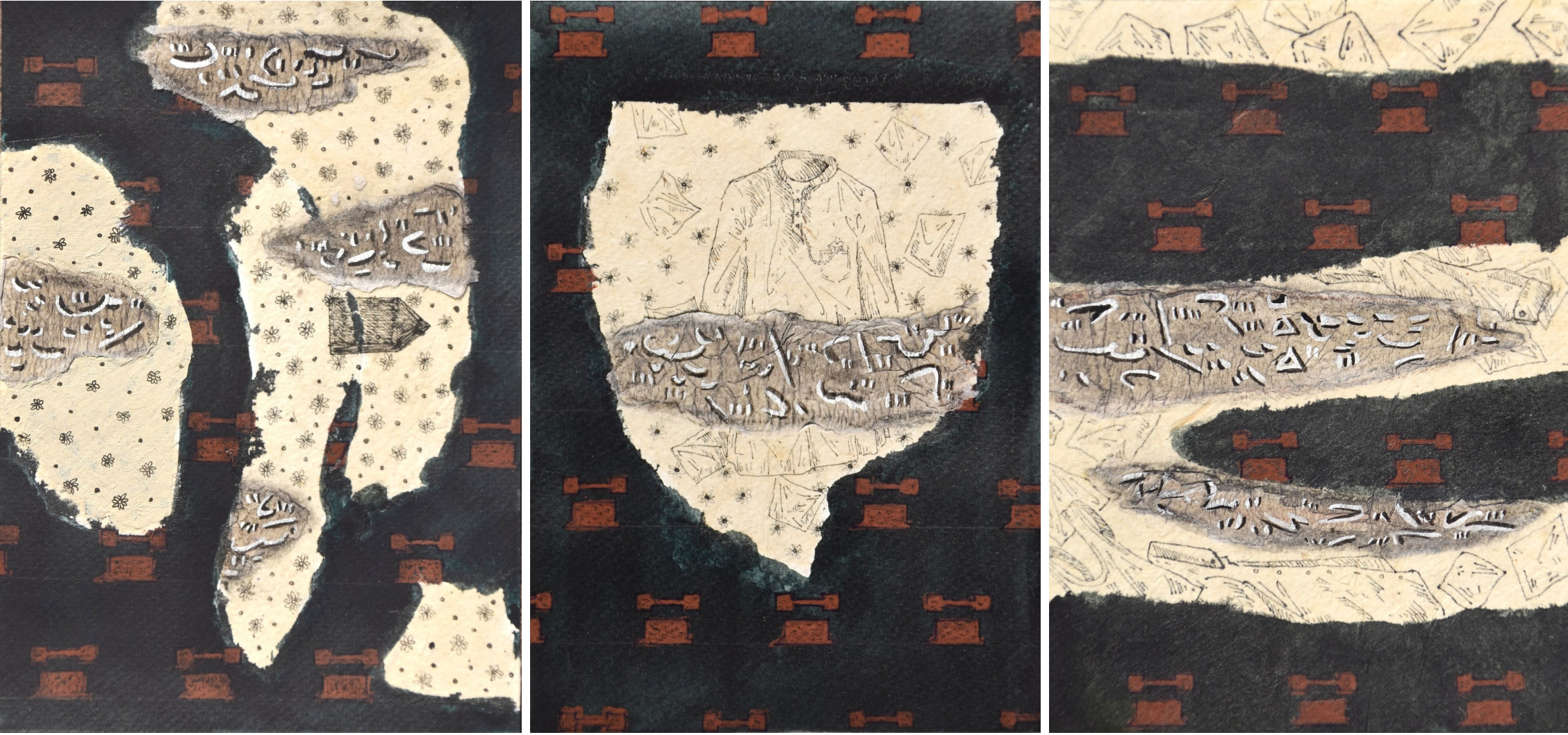 Another conversation with his neighbor revealed to Kano his grandmother’s practice of mark-making by means of a mnemonic that she arrived at borrowing from the formal elements of English, Hindi, Punjabi, Urdu and Mathematics, to keep track of her laundry list. Even as she was unconsciously developing a ‘new language’ based on the various cultural and linguistic influences in her past without any in-depth understanding of any of them, the process carries with it her defiance of singular identities and impositions of language based on the nation construct. In his grandmother’s notes, which he is unable to decipher, the artist discovers echoes of his own practice of documenting familial histories in his artworks. In the series of works, ‘Lost in Translation’, the artist mirrors her linguistic experiments as an act of acknowledging this serendipitous intergenerational purpose, establishing and blurring the framework of his practice as one that was inherited and at the same time his own.